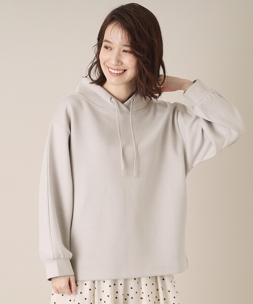 【デザイン】 ラフに着られるカジュアル感が可愛いトップス。 もっちりと柔らかな着心地でリラックス感のある一着。 もっちりと柔らかなダンボールジャージー素材を使用したプルオーバー。 抜け感のあるスタンド襟がカジュアル感の中に大人っぽさを演出してくれます。 リラックス感のあるゆったりとしたシルエットに、裾幅もしっかりあるので、気になる腰周りをさり気なくカバー。 パンツでもスカートでも相性良く、サイドスリットのワンポイントがこなれ感をプラス。 【素材】 もっちりとした弾力があり柔らかな着心地のダンボールジャージー素材。 一枚でも安心のしっかりとした肉感。 ※照明の関係により、実際よりも色味が違って見える場合があります。また、パソコン・スマートフォンなどの環境により、若干製品と画像のカラーが異なる場合もございます。 モデル情報:身長166cm B80 W59 H85 着用サイズ:00(フリーサイズ) 店舗へのお問い合わせ商品番号:P93-12504 ●製品寸法: 00(フリーサイズ):着丈60cm B104cm 袖丈46cm 肩幅49cm 備考: