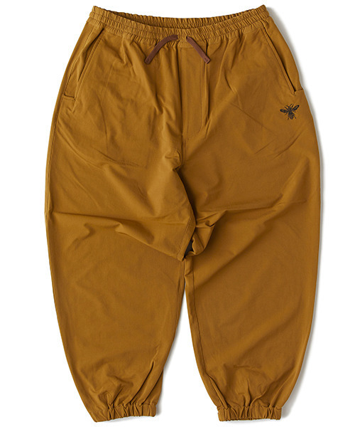 伸縮性の高いナイロンストレッチ素材を使用したトラックパンツ。ルーズ過ぎないヒップボリュームで膝下をすっきりさせたシルエットは、リラックステイストの中に落ち着いた雰囲気を演出してくれる。穿き心地の良さはもちろんのこと、足元にアクセントを加えて楽しみたいアイテム。フロントの刺繍とバックのブランドネームがシンプルな中にさり気なく主張してくれる。