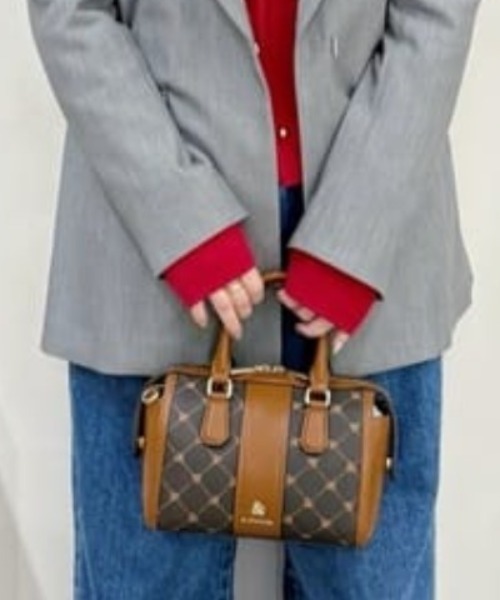 ◇& chouette(アンドシュエット)のモノグラム ミニボストンバッグ 人気のモノグラムシリーズから定番色でつい買いやすいミニボストンバッグが登場しました。 ホワイトベースとブラウンベースの使いやすいカラーなので、どんなコーディネートでも合わせやすいアイテムです。 ▼機能性 ・細めのハンドルになっているのでハンドバッグとして使うときのフィット感が抜群! ・ファスナーがサイドがまで開くのでメインの収納部分がガバっと大きく開くのもポイント♪ 荷物の出し入れもスムーズに行うことができます。 ・内側にはオープンポケットが1つあり、小物を分けて収納することができます。 ・内側のオープンポケットは大きめに作ってあるのでスマートフォンやパスケースも収納可能です。 ・ショルダーもついているのでハンドバッグとしてだけではなくショルダーバッグとしても◎ ▼スタイル ・クラシカルな雰囲気の柄とデザインで季節関係なくコーディネートに加えやすいバッグです。 ハンドル部分がバイカラーになっているので、きれいめ過ぎずカジュアルにも持つことができます。 フロントにラインが入ることで引き締まった印象に。 中心のロゴがきらりとひかり、華やかさと高級感をプラスしてくれます。 【サイズ感】 長財布…〇、500mlペットボトル…〇 FREE:幅21cm/高さ15cm/マチ11cm/持ち手上がり9cm/ショルダー最長136.5cm/ショルダー最短116.5cm/重さ400g/