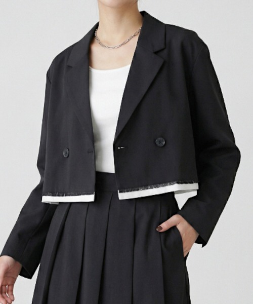 【Per sist ence/パーシエンス TRツイルショートパイピングジャケット セットアップ対応/ショート丈/テーラードジャケット】Per sist enceからTRツイルショートパイピングジャケットが登場。TRツイルのハンサムな表情のジャケットを、大胆なショート丈にアレンジ。カッチリしつつも抜け感のあるアイテムです。裾はカットオフ仕様で、別布を組み合わせることでメリハリを出しています。スーツ生地のような上品なファブリック。きれいめとトレンド感を両立した、ショート丈のテーラードジャケット。程よく落ち感のあるTRツイル素材を使用し、軽やかで上品な印象に仕上げました。コンパクトなショート丈シルエットがスタイルアップ効果を演出し、ワイドボトムやロングスカートとも好相性。裾部分には配色パイピングを施し、シンプルながらもアクセントの効いたデザインに。同素材のハーフパンツ(25S-PTL127-DS)・プリーツロングスカート(25S-SKL128-DS)とセットアップでの着用も可能。カジュアルからきれいめまで幅広いスタイリングに活躍します。カラーはブラック / チャコールグレー / ライトグレー / キャメルの4色展開。#ショートジャケット#テーラードジャケット#セットアップ#セットアップコーデ#TRツイル#きれいめコーデ#オフィスカジュアル#韓国ファッション#大人カジュアル#スタイルアップ#春アウター#秋アウター#ZOZO人気#トレンドアイテム【Per sist ence/パーシエンス】ヴィンテージテイストの中にも女性らしさを感じさせ、“CITYLIKE”=’気の張らない‘をコンセプトに掲げ、ナチュラルをベースに、トレンドを程よく加えたファッションを提案するレディースブランド。肩の力を抜いたような、抜け感のあるデイリースタイルを目指します。【お買い物ガイド】■♡をクリックして商品をお気に入り登録!完売カラーの再入荷通知や、ラスト1点の通知、セールの通知をお知らせします。■ブランドのお気に入り登録新商品や再入荷など、いち早くWEST CLIMBのお得な情報を受け取ることができます。※画像の商品は光の照射や角度により、実物と色味が異なる場合がございます。また表示のサイズ感と実物は若干異なる場合もございますので、予めご了承ください。※着用、お取り扱いの際は、商品についている品質表示とアテンションタグを必ずご確認下さい。