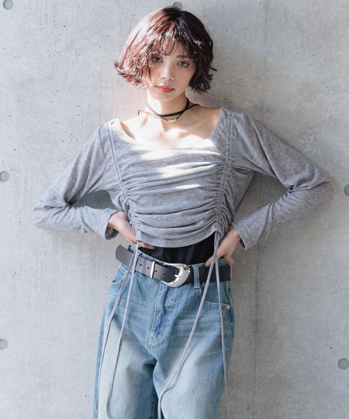 ドロストデザインのトップスと ホルダーネックタンクがセットになったシアートップス! 素材・デザイン ・前身頃のみのギャザーデザインが可愛いドロストロングシアートップにホルダーネックタンクに合わせたセットアイテム ・アウターはシアーリブに柔らかい触りで着心地良いし、シャーリング紐を結ぶキュートなデザインがポイント ・ホルダーネックのインナータンクはコンパクトなサイズ感とシルエットで着回しの効くアイテム コーディネート ・着丈を短くしてハイウエストボトムと合わせる美脚効果抜群! ・カーゴパンツ、ダメージデニム、ワイドパンツなどのカジュアルアイテムと合わせるとトレンドのコーデに ・ミニスカやショートパンツなどのミニボトムスと甘辛コーデにも◎ 〈注意事項〉 ※サンプルにて撮影をしておりますので、実際の商品とは仕様や加工・サイズ等が若干異なる場合がございます。 ※屋外の光や照明の当たり具合で、実物と色味が異なって見える場合がございます。詳細画像の色味をご確認ください。 なお、商品の色や質感を出来るだけ忠実に再現するよう心掛けておりますが、パソコンなどの環境により、実物と若干異なる場合がございます。 ※写真を許可無くコピー・転用することは固くお断りします。 ▼気になるアイテムは《お気に入り登録》がおすすめです! 完売カラーの再入荷情報、セール情報、ラスト1点の通知を受け取ることができます! ▼《ブランドのお気に入り登録》で新商品や再入荷などのお得な情報をいち早くお知らせします。
