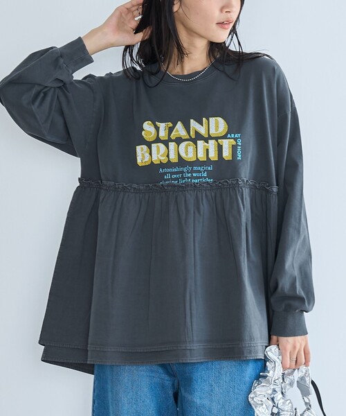 1枚で着映えする、頼れる大人カジュアルな1枚 ☆オススメポイント☆ ・デザイン性のあるカットソー×布帛素材の切り替えでワンツーコーデの強い味方 ・着心地の良い綿素材で扱いやすくデイリーに活躍 ・カーデやアウターを羽織ってもロゴがしっかり主張 ■デザイン/素材 程よいハリ感を持つ布帛と快適な着心地のカットソー素材を切替え、1枚でも着映えするロンTが登場しました。 袖や身頃はトレンド感のあるゆったりシルエット。 派手過ぎないロゴもポイントで、アウターやカーディガンを羽織ってもポイントになります。 カジュアルなワイドパンツはもちろん、ナロースカートで女性らしくまとめるのもおすすめ。 コーデに迷ったらつい手が伸びる、頼れる1枚です。 透け感:オフホワイトややあり 生地の厚さ:普通 光沢感:なし 家庭洗濯:可能(ネット使用) 【注意点】 ※撮影商品はサンプルの為、実際の仕様と異なる場合がございます。 ※画像の商品は光の照射や角度、お使いのモニター環境により、実物と色味が異なる場合がございます。スタジオ物撮りの画像が実物の色味に一番近くなっております。 ※予約商品の場合、お届け予定はあくまでも目安となります。 生産の都合上、お届け時期が前後したり実店舗入荷時期とずれる場合がございますので、あらかじめご了承ください。 品名:フハクドッキングロゴpt L/S 品番:76206020541