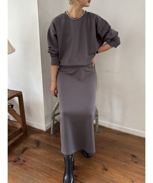 「究極のリラックス」を「究極のきれいめ」に。着るだけでコーデが完成する2ピースセット。 (楽な着心地と、そのまま外出できるデザイン性を求める女性へ) カジュアルなスウェット素材を使用しながら、Iラインのロングスカートで驚くほど洗練された印象に仕上げたセットアップです。 休日のワンマイルウェアから、アクセサリーをプラスしてのお出かけまで、シーンを選ばず活躍します。 スタイルを格上げする3つのポイント 美 Iラインスカート: スカートはストンと落ちるIラインシルエット。 体のラインを拾いすぎず、最大限の着痩せ効果を発揮します。 サイドスリットが、足元に抜け感と動きやすさをプラス。 計算されたトップス: トップスは、トレンドのオーバーサイズとドロップショルダーでリラックス感を演出。 背面に入った切り替えが、アウトしたままでもサマになる絶妙なバランスを実現しています。 シックなカラー: ブラックほど重くなく、グレーほどカジュアルすぎないチャコールグレーを採用。 落ち着いたトーンが、セットアップ全体を大人っぽくきれいめな雰囲気にまとめます。 外出OKな高見え素材 肌触りの良いスウェット素材を使用。シワになりづらい素材感なのも嬉しいです。 楽な着心地でありながら、カジュアルすぎないハリのある生地感で、そのまま外出しても「手抜き感」は一切ありません。 もちろん、それぞれ単品での着回しも可能。 スカートはブラウスと、トップスはデニムと、お手持ちのアイテムと無限のコーディネートを楽しめます。 <商品詳細> カラー:チャコールグレー、ダークグレー系 シルエット:トップス/オーバーサイズ、スカート/Iライン(マキシ丈) 特徴:2点セット、サイドスリット、裏毛/スウェット素材、クルーネック