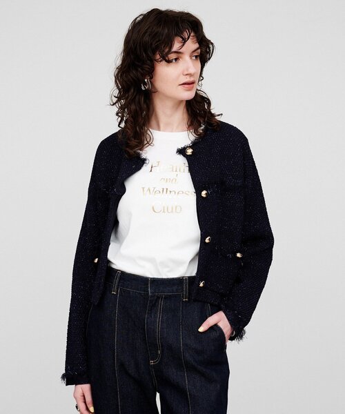ON/OFF兼用可能!きらりと散りばめたラメでコーディネートが華やぐツイードカーディガン。 【デザイン】 ・ツイード素材にラメを織り交ぜ、洗練された華やかさを演出。 ・ゴールドボタンがこなれ感をプラスし、ディテールまで上品さを追求。 ・フリンジ仕上げの衿元や袖口が、エレガントな中にもエッジ感を取り入れたデザイン。 【素材】 ・適度なハリ感とやわらかな風合い。 【着こなしポイント】 ・オケージョンシーンやオフィスにも相性◎ ・デニムやワイドパンツと合わせて、デイリーカジュアルに格上げするのもおすすめ。 ーーーーーーーーーーーーーーーーーーーーーーーーーーーーー 気になるアイテムはお気に入り登録がおすすめ! お気に入り登録で、再入荷通知やお値下げ情報をお知らせ。 お得な情報をいち早くお届けいたします! アイテムページにある、ハートマークをクリックして追加できます。 ーーーーーーーーーーーーーーーーーーーーーーーーーーーーー ※照明の関係により、実際よりも色味が違って見える場合があります。また、パソコン・スマートフォンなどの環境により、若干製品と画像のカラーが異なる場合もございます。 店舗へのお問い合わせ商品番号:R91-32402 ●製品寸法: 02(M):着丈48cm B104cm 袖丈102cm 肩幅46cm 備考: