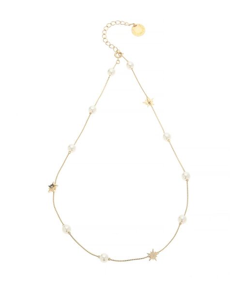 ■デザインコメント星のパーツと小粒のフェイクパールが連なったショートのネックレス。華奢ながらも存在感があり首元を華やかに見せます。パーツが小さいのでどんなスタイリングにもなじんで着用いただけます。同パーツを使用したピアスの展開もございます。【 ZOZOTOWNでお買い物を楽しむ便利機能 】♡商品のお気に入り登録完売カラーの再入荷時、ラスト1点の時、セール開始時にお知らせします。予約アイテムが入荷して通常販売になった時もお知らせしてくれます!その他お得な通知も盛りだくさんです。♡ブランドのお気に入り登録新商品や再入荷、セール情報など、いち早くブランドのお得な情報を受け取ることができます。ぜひご活用ください!#オケージョン#パーティードレス#結婚式#二次会#お呼ばれ
