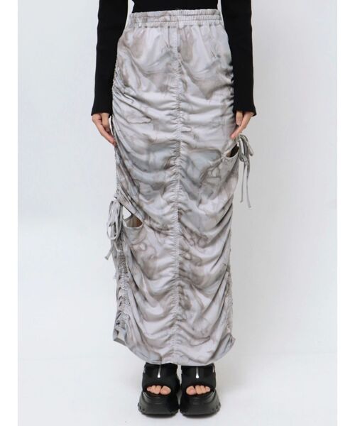 全体的にたっぷりとギャザーの入ったデザインスカート ■デザイン 左右にスリットを入れて肌が見えるデザインになっています。 スリット部分のリボンもポイントで、抜け感のある一枚で映えるスカート。 ウエストゴムなので着脱もしやすく、伸縮性のある為生地を使用しているので履き心地も抜群です。 ■スタイリング デザイン性のある1枚なので、 クロスクロップドトップのようなシンプルなトップスと合わせてスカートを主役にしたスタイリングがオススメ。 カーブレースアップデニムビスチェやデニムウォッシュベストのようなデニムアイテムと合わせて頂くと春夏らしい印象になります。 ※着用画像はフラッシュの加減で実際の製品と色味等が異なる場合がございますので、生地のズームアップ画像をご確認ください。 ※ご利用の端末画面の設定により実際の商品と色味が異なる場合がございます。 【商品特徴】 透け感:なし 伸縮性:あり 生地の厚さ:普通 サイズ感:普通 裏地:なし ポケット:なし 【トクする便利機能】 ♡商品のお気に入り登録 再入荷時、ラスト1点の時、セール開始時にお知らせします。 ♡ブランドのお気に入り登録 新商品や再入荷、セール情報など、ブランドのお得な情報を受け取ることができます。 是非ご活用ください!