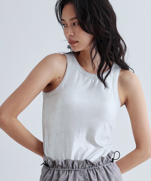 Design Pointピカピカ輝く素材感がスタイリングを華やかにしてくれる、今年らしいアメリカンスリーブのタンクトップ。伸縮性に富み、張り付きにくく、着丈も長めなためドレスからカジュアルまで幅広くコーデしやすいインナーです。Styling Pointどんなアイテムにも対応可能なマルチインナー。露出の高いドレスなどにもおすすめで、ラインの出やすいトップスやワンピースにも重宝します。ジャケットのインナーにさらっと着るだけでモード感をプラスしてくれます。Fabric Point体の動きに柔軟な伸縮性のよいカットソー地を使用しています。・衛生上の観点から当商品の返品は不可となります。*****************************\\気になるアイテムはお気に入り登録がおすすめ//気になるアイテムのページにある「♥マーク」をクリックして簡単に追加できます。登録すると、再入荷通知やお値下げ情報をメルマガにてお知らせ!マイページにてお気に入り一覧もチェックできます。*****************************※照明の関係により、実際よりも色味が違って見える場合があります。また、パソコン・スマートフォンなどの環境により、若干製品と画像のカラーが異なる場合もございます。店舗へのお問い合わせ商品番号:523-12005●製品寸法:38(M):着丈56cm B76cm 肩幅28cm備考: