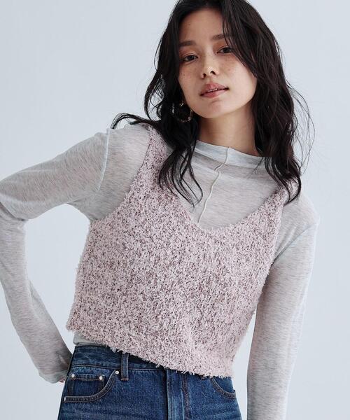Design Point やわらかな風合いと立体感があるニットベスト。 淡い色合いで洗練された印象を与えつつ、シンプルなデザインがどんなスタイルにもフィットします。 短めの丈感が、レイヤードスタイルを引き立てる一着です。 Styling Point Tシャツやシャツの上にさらりと重ねるだけで、モードな雰囲気を演出します。 デニムやスカートと合わせることで、カジュアルながらも洗練されたコーデが完成します。 シーンを選ばず、普段使いに最適です。 Fabric Point 柔らかいテープヤーンを使用しており、着心地が軽くリラックス感のある仕上がりです。 ***************************** \\気になるアイテムはお気に入り登録がおすすめ// 気になるアイテムのページにある「♥マーク」をクリックして簡単に追加できます。 登録すると、再入荷通知やお値下げ情報をメルマガにてお知らせ! マイページにてお気に入り一覧もチェックできます。 ***************************** ※照明の関係により、実際よりも色味が違って見える場合があります。また、パソコン・スマートフォンなどの環境により、若干製品と画像のカラーが異なる場合もございます。 店舗へのお問い合わせ商品番号:523-12409 ●製品寸法: 38(M):着丈38cm B80cm 肩幅28cm 備考: