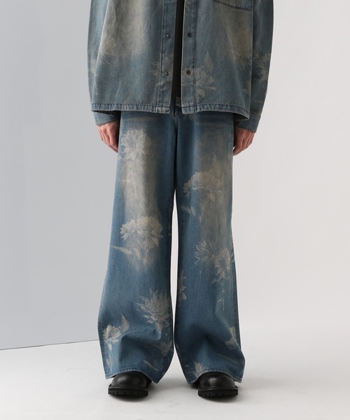 ーーーセットアップ対応大胆に大振りの花柄を転写したワイドデニムパンツーーーpoint□大振りの花柄を転写したデザイン。□デニムのヴィンテージ加工になじむよう転写しているため、程よいアクセントに。□裾に向かって広がるトレンドのワイドシルエット。□同素材のシャツとセットアップで着用可能。set itemセットアップ対応アイテムはコチラ→【320369】