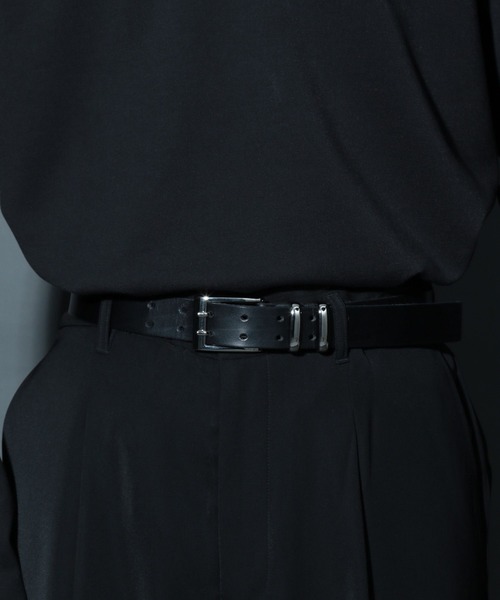 ーーー スクエアバックルがワンポイントになる本革ベルト ーーー point □スクエアのバックルで作成した本革ベルト。 □耐久性があり、長持ちする牛本革を使用。 □シンプルながらバックルやダブルピンなどがが程よいポイントになり、シーンレスでご使用できます。