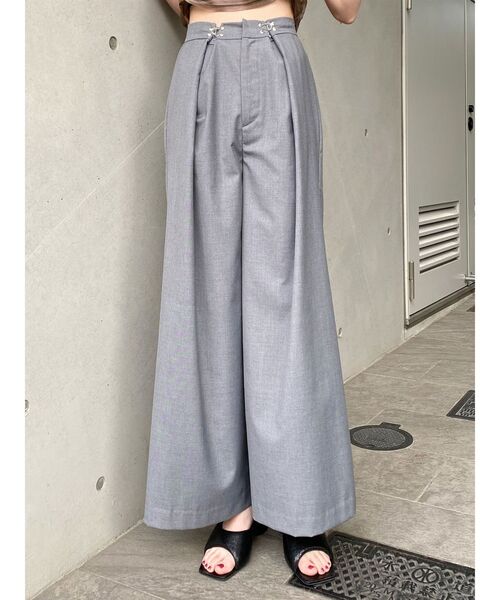 【2025 SPRING COLLECTION】 ウエストの調節でラインが変わる2WAY仕様 スタイリングの幅が広がる1本 ■アイテム ウエストのアジャスターでウエストラインを 2段階に変化させられるパンツ2WAYパンツ。 ハイウエストにもローウエストにもご着用頂けて スタイリングの幅が広がります。 ハリのある素材感で高見えするのでおすすめです。 大きなタックがポイントなので、 トップスはミニマムなものや、ぴったりしたものでバランスをとるのが◎ -------------------------------------------- 透け感:なし 生地の厚さ:普通 伸縮性:なし サイズ感:ややゆったり -------------------------------------------- 【知って得する便利機能◎ 】 ■商品のお気に入り登録 再入荷時、ラスト1点の時にお知らせします。 ■ブランドのお気に入り登録 新商品やお得な情報など、いち早くお得な情報をゲット! ぜひご活用ください。 ※着用画像はフラッシュの加減で実際の製品と色味等が異なる場合がございますので、生地のズームアップ画像をご確認ください。 ※ご利用の端末画面の設定により実際の商品と色味が異なる場合がございます。