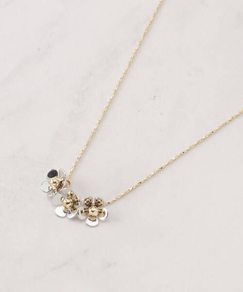 エレガンスと遊び心が共存するメタルフラワーモチーフのネックレス 【デザイン】 メタルのフラワーモチーフが特徴のこのネックレス。 甘くなりすぎないデザインで、シンプルながらも存在感があります。 2WAY仕様で、着用シーンに応じたスタイルの楽しみ方が広がります。 【機能性】 スライダーで長さ調整可能 2WAY 【カラー】 005 モチーフ:ピンクシルバーカラーメッキ /チェーン:シルバーカラーメッキ 006 モチーフ:シルバーカラーメッキ /チェーン:ゴールドカラーメッキ 009 モチーフ:ブラックニッケルカラーメッキ /チェーン:シルバーカラーメッキ ※照明の関係により、実際よりも色味が違って見える場合があります。また、パソコン・スマートフォンなどの環境により、若干製品と画像のカラーが異なる場合もございます。 店舗へのお問い合わせ商品番号:C70-82017 ●製品寸法: 00:全長64cm モチーフH1cm モチーフW1cm 備考: