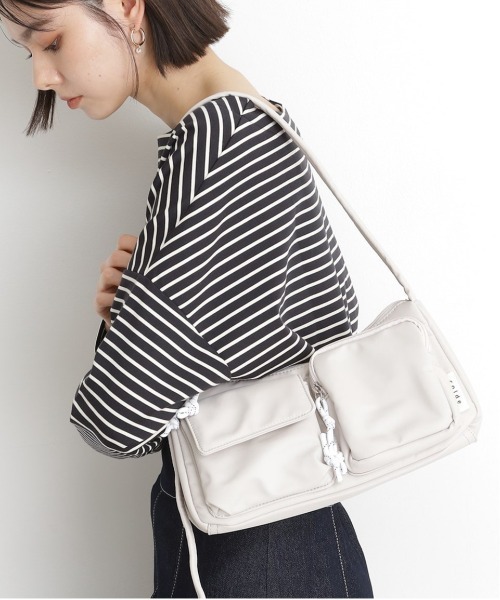 ■ポイント/詳細 コンパクトですが立体感のある多ポケットが沢山付いているデザインバッグ! 【仕様】 ・ポケット数:内側×3(ファスナー付×1) 外側×2(ファスナー付×1) ※照明の関係により、実際よりも色味が違って見える場合があります。また、パソコン・スマートフォンなどの環境により、若干製品と画像のカラーが異なる場合もございます。 店舗へのお問い合わせ商品番号:040-02111 ●製品寸法: 00:高さ14cm 幅(上部)26cm 幅(下部)29cm マチ11cm ショルダー対応サイズ~91cm 備考:重量:約245g