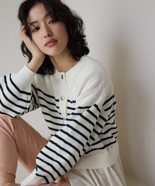 【デザイン】このクルーカーディガンは、布帛のフリルが付いており、華やかさをプラスしたデザインが特徴です。ペプラム風のプルオーバーとしても楽しめるため、多様なスタイリングが可能。フリル部分は取り外し可能で、シンプルなクルーカーディガンとしてもご使用いただける嬉しいアイテムです。【素材】ザックリとした編地の軽やかな素材感は、肌触りが優しく快適な着心地を提供します。通気性が良く、春や秋の季節にぴったりの一着。【着こなしポイント】このカーディガンは、シンプルなTシャツやブラウスと合わせて、日常のコーディネートに取り入れることができます。ペプラムスタイルではスリムなパンツを合わせてバランスを取り、クルーカーディガンとしてはワイドデニムやスカートとの組み合わせもおすすめ。アクセサリーをプラスして、より洗練された印象に仕上げることもできます。※照明の関係により、実際よりも色味が違って見える場合があります。また、パソコン・スマートフォンなどの環境により、若干製品と画像のカラーが異なる場合もございます。モデル情報:身長166cm B72 W62 H86 着用サイズ:12(M)店舗へのお問い合わせ商品番号:040-32003●製品寸法:12(M):着丈67cm B102cm 袖丈47cm 肩幅50cm13(L):着丈68cm B104cm 袖丈47cm 肩幅51cm備考: