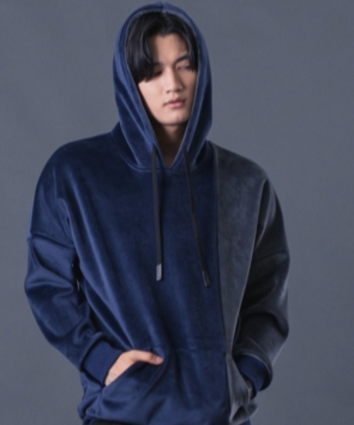 高級な大人のパーカー ドロップショルダーでルーズなスタイルが 人気の配色ビッグシルエットプルパーカーです。 使用しておりますマイクロベロア素材は、 その名の通り細かな起毛がビロードの様なソフトでしっとりとした肌触りで、 触れているだけで癒される感じさえします。 尚且つ、こちらは表裏の両面を起毛しているWフェースなので、 肌に触れやすい内側も気持ちよく、 外側も柔らかいのでその心地よさに包まれるようにさえ感じます。 更に、その素材感は着心地だけでなく、細かな毛足が美しい為、 表面が綺麗で独特の光沢感を出すと同時に、 色合いをスモーキーに表現してくれるので高級感あるパーカーになっています。 この素材は前シーズンから大変ご好評を頂いており、 今回はサイドを配色で切り替えたラインナップを追加致しました。 その配色のコントラストが楽しめるデザインです。 【REGIEVO】 REGIUS EVOLUTION (華麗なる進化) トレンドに流されない、 大人の為の STYLISH & COMFORT なデザインを追求するブランド