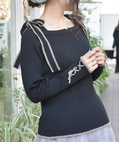 【アイテム説明】 バイカラーのショルダーリボンがポイントのニットトップスです。 【デザイン】 デイリー使いしやすいリブトップスです。 今から春先にも着られる肉感で、伸縮性があり着心地も抜群。 【コーディネート】 シンプルなボトムから柄のスカートまで幅広く合わせられるアイテムです。 ▽ axes femme * アクシーズファム 【Concept】 axes femmeのお洋服であなたのライフスタイルに ほんの少しだけ彩る花が咲きますように。 ブランドを通して、彩る花たちが、 人と人、お客様や作り手たちの想いが世界中に繋がっていきますように。 ベル・エポック(フランスの古き良き時代)にパリジェンヌたちが愛したファッションや文化にルーツをおき、 独自のフェミニンスタイルを楽しむブランド ********************** .。.: お気に入り登録のおすすめ :.。. ∇気になるアイテムを登録∇ ハートをクリックしてお気に入りに登録すると 完売カラーの再入荷やラスト1点の通知、セールの通知を受けとることができます。 ∇ブランドを登録∇ 新商品や再入荷、セール通知など、いち早くブランドの情報を受けとることができます。 是非ご利用頂き、お買い物をお楽しみ下さい。 .。.: 商品について :.。. ・サイト上のカラー名と、お届け商品に記載されているカラー名が異なる場合がございます。 ・商品の色味は、撮影場所や光のあたり具合、お客様のお使いのPCのモニター環境などにより色味が違って見える場合がございます。 予めご了承の上ご注文下さい。 .。.: 返品・キャンセルについて :.。. ・着用、洗濯後の返品は致かねます。 ・商品到着後、着用前に商品を確認して頂きますようお願い致します。