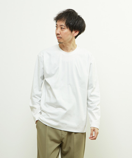 <デザインの特徴>袖口と裾の縫い代を幅広に設定する事により、全体がしっかりとした雰囲気に上がるよう調整しています。シロTやロンTにありがちな肌着っぽさが一切ない主役級の仕上がりです。<素材について>適度に厚みのあるスムース素材にシルケット加工を加えて毛羽を落とし光沢とサラっとした質感を付加した素材です。見た目にも上質感のある雰囲気に仕上がっています。<サイズ感・シルエットの特徴>肩や胸辺りにゆとりを持たせながらもスタイリッシュに着用できるよう、裾幅は少し細くし着丈も若干短めにパターンメイクした絶妙なシルエットです。ジャケットなどとの相性がよくキレイ目スタイリングにはまります。<サイズ表記>2=S、3=M、4=L【注意事項】※画像の商品はサンプルです。実際の商品と仕様、加工、サイズが若干異なる場合がございます。また、商品画像は、光の当たり具合やパソコンなどの閲覧環境により、実際の色味と異なって見える場合がございます。予めご了承ください。【お買い物をお楽しみいただくために】▼商品のお気に入り登録完売カラーやサイズの再入荷通知や、ラスト1点の通知、セールやクーポンなどお得な情報を受け取ることが出来ます。▼ブランドのお気に入り登録新商品や再入荷など、いち早くブランドのお得な情報を受け取ることが出来ます。