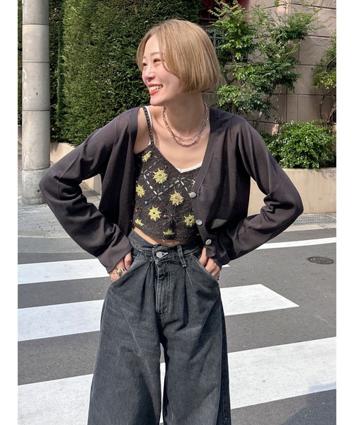 夏らしい華やかな配色の編地とカラフルなクリアビーズがキャッチーなニットビスチェ■デザイン胸元は深めのVカッティングでヘルシーさを演出。前面全体に大小ランダムにカラフルなクリアビーズを縫い付けており、きらきらとさりげないポイントに。シャツやTシャツに合わせてもバランスが取りやすいように、着丈は短めで肩紐は調節可能な仕様です。バストはルーズなサイズ感で、着丈は短めに設定。肩紐で位置は調節していただけます。■生地感肌触りのいい綿素材のニットを使用。チクチクせずにご着用いただけます。■スタイリングラフにTシャツとの合わせが夏らしさもありおすすめ。同じシリーズのスカートとビスチェと合わせたスタイリングも可愛いです。・・・・・・・・・・・・・・・・・・・・・・透け感:あり裏地:なし伸縮性:なし光沢感:なし生地の厚さ:普通・・・・・・・・・・・・・・・・・・・・・・※商品画像はサンプルのため、色味やサイズ、素材の混率等の仕様に変更がある場合がございます。予めご了承ください。※生地寄り画像を正規の商品の色味に近づけております。■商品のお気に入り登録再入荷通知やラスト1点、お得なプライスダウンの情報も受け取ることができます。ぜひご登録ください◎サマーニット / 夏服