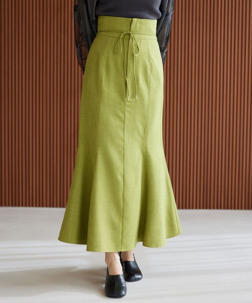 ーーーセットアップコーデも楽しめる♪ウエストリボンがポイントのマーメイドスカートーーー■point・ウエストのリボンがアクセントとなり、コーデにメリハリを与えてくれます。・タイトすぎず、フレアすぎないマーメイドラインでスッキリ見えします。・前ジップでウエスト後ろがゴム仕様なので履き心地がラクチン♪・手洗い可能です■styling同素材のジャケット(品番:320214)との合わせでセットアップとしての着用がおすすめ◎シンプルなデザインなので、ブラウスからTシャツまで、幅広いテイストで着こなしが可能です。※屋外の光や照明の当たり具合で、実際の商品の色味とカラー別画像の色味に若干の違いが発生する場合がございます。 詳細画像と併せてご確認の上、ご注文いただきますようお願い致します。【INFOMATION】■商品のお気に入り登録完売していても再入荷時に再入荷通知を受け取ることができますので、是非ご登録ください!■ブランドのお気に入り登録新商品や再入荷などの情報を受け取ることができますので、是非ご登録ください!