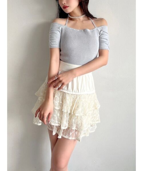 パールが顔回りを華やかに仕上げるニット▽デザイン▽パールのチョーカーを付けているかのようなデザインにし、顔周りを華やかな印象に♪首の後ろでリボン結びをしてチョーカーを作るのでパールとリボンが周りと差がつくデザインニットです。オフショルにしたことでデコルテを綺麗に見せることができ、女性らしさをUPさせてくれる1着。袖にはギャザーを寄せワンポイントプラスしました♪▽カラー▽黒・青・ピンクの3色展開。▽スタイリング▽キレイ目なスカートからカジュアルなデニムまで、どんなアイテムにも万能にマッチします◎薄手の羽織りを合わせても、オフショルの肌見せとチョーカーデザインが隠れずコーデのアクセントに!※着用画像はフラッシュの加減で実際の製品と色味等が異なる場合がございますので、生地のズームアップ画像をご確認ください。※ご利用の端末画面の設定により実際の商品と色味が異なる場合がございます。【商品特徴】透け感:なし伸縮性:あり生地の厚さ:普通サイズ感:普通裏地:なしポケット:なし