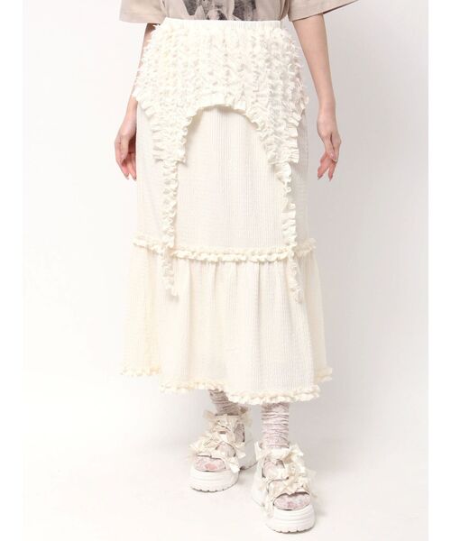■デザイン ガーターベルトをドッキングしたようなユニークなデザインスカート。 大人っぽいイメージのガーターデザインも、フリルデティールや柔らかく 立体感のあるカット生地を使用することでガーリーな印象に。 ガーター部分は立体感のあるフリンジ生地を使用し、 スカート部分はすっきりと仕上げました。 ■サイズ ウエストはぐるりゴム仕様です。 ■スタイリング 春服にはシアートップスを 夏服にはちびTシャツは安定コーデに、 BigTシャツに合わせてレイヤードをお楽しみください。 厚底スニーカーを履いてスタイルアップも◎ 【商品情報】 透け感:ややあり(オフ) 裏地:あり 伸縮性:あり 光沢感:なし 生地の厚さ:普通 【商品のお気に入り登録】 ♡をクリック! 完売カラーの再入荷や、ラスト1点の通知、 セールの際の通知も受け取ることができます。 【ブランドのお気に入り登録】 新商品や再入荷など、 merryの情報をいち早くお知らせします! ぜひご登録ください♡