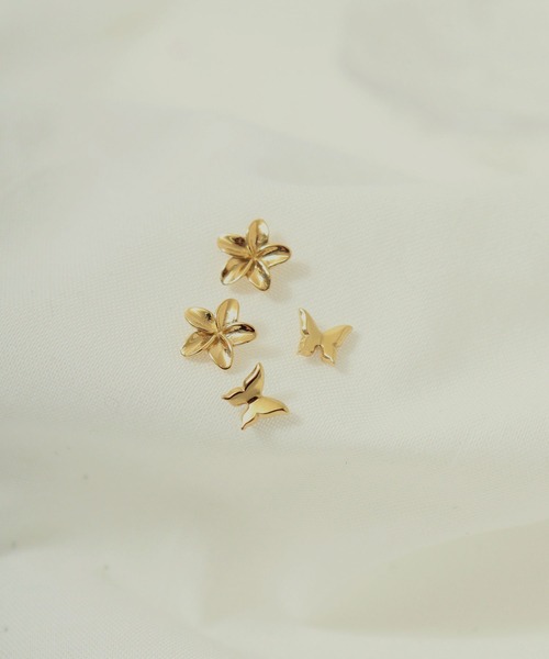 blancotokyo/ブランコトウキョウ□ポイントプルメリアモチーフの小ぶりなピアスと蝶のピアスの両耳用の4点セットです。シンプルで飽きのこないデザインで、ハワイでは「大切な人の幸せを願う」という意味を持ち、神が宿る花とも言われています。軟骨ピアスとしてもおすすめです。ぜひ色々なアレンジを楽しんでください。シリコンキャッチ付きです。通常のキャッチとは別にシリコンキャッチをお付けしておりますので用途に合わせてご使用ください。□ サイズ約9mm□ステンレス316Lのオススメポイント!・医療用サージカルステンレス・医療現場でも使用される高品質素材・着けっぱなしオッケー・お肌に優しい素材を使用・金属アレルギーが起きにくい・水に強くさびにくい・キズが付きにくい□カラーシルバー・ゴールド【お買いものをお楽しみいただく為の方法】★商品のお気に入り登録★・完売カラーの再入荷通知や、ラスト1点の通知、セールの通知も受け取ることができます。★ブランドのお気に入り登録★・新商品や再入荷など、いち早くブランドのお得な情報を受け取ることができます!