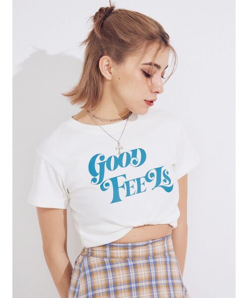 【コンパクト】【ミニT】【プチプラ】【クロップド丈】【ショート丈】 ■デザイン コンパクトすぎず、オーバーすぎず、ジャスト丈で着れるTシャツです。 シルエットはベーシックに、キャッチーなロゴデザインがEVRIS(エヴリス)らしい1枚です。 意味:心地よい感じ ■スタイリング 一枚で決まるアイテムですが、ジャストで着れるサイズ感はレイヤードにもピッタリ。 デニムワンピースのインナーや、>>ティアードレースキャミソールと合わせて着るのもおすすめです。 -------------- 透け感:白:ややあり 裏地:なし 生地の厚み:普通 伸縮性:なし --------------