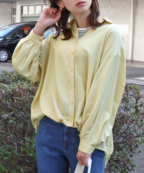 裾のタックデザインがヘルシ―な女性らしさを演出◎ 春先から秋口とロングシーズン使える万能シャツが登場! ■point ・ゆったりサイズで体型カバー◎ ・ふわっとしたボリューム袖 ・裾フロントタックでバルーンシルエット風 ・着丈の前後差でこなれ度UP! ■detail ヒップまで隠れる丈感で、気になる腰回りをカバーしてくれます◎ 裾のタックがバルーンシルエットのように見えるデザインで、ふわっとした女性らしい印象に。 袖口にはギャザーとタックの両方が施され、ボリュームのある1枚。 衿元はスキッパー仕様で、程よい肌見せが抜け感を演出してくれる商品になっています。 ■fabric 柔らかくとろみのある生地感でストレスフリーな着心地◎ 程良い光沢感で上品な印象を与えてくれます! 春先から秋口とロングシーズン使える素材なので、これからのワードローブに加えたいアイテムです♪ …………………… 透け感:オフ ややあり 厚さ:薄手 裏 地:なし 光沢感:ややあり 伸縮性:なし ポケット:なし 洗濯方法:手洗い …………………… ※ネットに入れてのお洗濯をお勧めいたします。 ※詳しいお手入れ方法は商品タグをご参照ください。 ■coordinate ストレートパンツやナロースカート、ワンピースといったきれい見えするアイテムと合わせたり、 デニムと合わせてカジュアルに着ていただくのも◎ トップはシンプルにタンクトップやTシャツを合わせていただくのがオススメ!! ボタンを閉じて着るか、羽織りで着るかでスタイリングの幅も広がるアイテムとなっています。 …………………… 【スタッフ着用コメント】 年齢20代/身長:161cm/体型:やや細身/普段サイズ: M /着用サイズ:M サイズ感:ヒップまで隠れる丈感が気になる腰回りをカバー◎ ルーズ過ぎない着崩しで自然なこなれ感を演出してくれます◎ 袖口がふんわりとしたボリューム袖になっているのが可愛らしく 軽く捲るだけでクールな印象にも見せてくれます◎ …………………… 《商品のお気に入り登録》 ・再入荷通知や、ラスト1点の通知、セール通知も受け取ることができます。 《ブランドのお気に入り登録》 ・新商品や再入荷など、お得な情報を受け取ることができます。 ※屋外の光や照明の関係により、実際よりも色味が違って見える場合があります。 またパソコン・スマートフォンなどの環境により、若干製品と画像のカラーが異なる場合もございます。 予めご了承ください。 ※商品の色味は、商品アップ画像をご参照ください。 ※他のキャンペーンにより、期間中に価格が変動する場合があります。