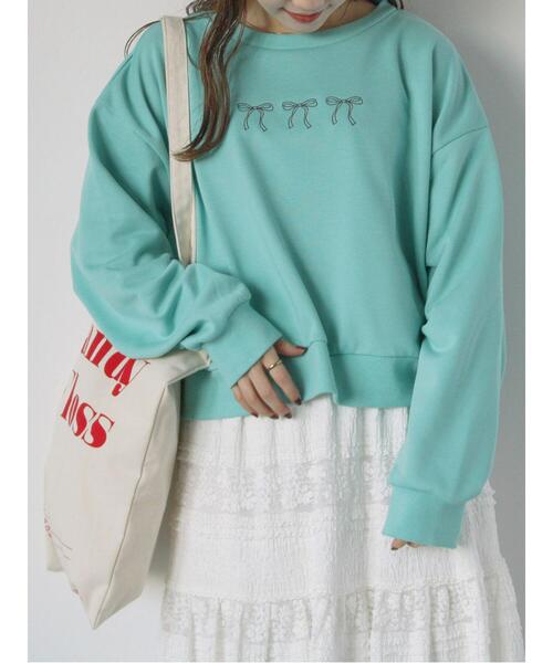 人気のリボンモチーフを胸に刺しゅうしたスウェット。 シンプルながらも甘さをプラスすることでコーディネートの大人可愛いアクセントに◎ バレエコアなスカートやブラウスをインに合わせたりと、様々な着こなしのアレンジも楽しめるアイテムです。