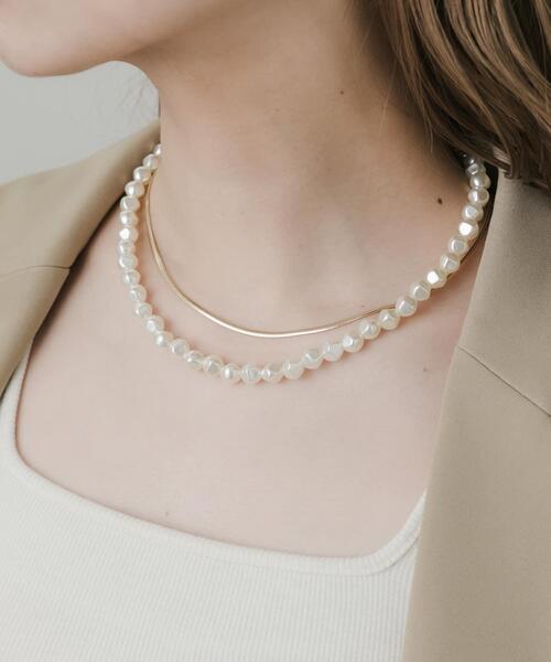 【どんなシーンにもマッチするセットネックレス】●異なるデザインのネックレスを2点セットに●組み合わせ次第で様々なシーンで活躍●流行り廃りなく使えるベーシックなデザインボコボコとしたいびつな形のパールネックレスと、シンプルなスネークチェーンネックレスを2点セットでご用意しました。どちらもベーシックで使い勝手の良いデザインなので、単体使いでも活躍間違いなし。Tシャツやスウェットといったカジュアルスタイルから結婚式などのパーティーシーンまで、合わせ方次第で幅広い場面でマッチするアイテムです。【2025 Spring/Summer】【25SS】※金属アレルギー症状が出にくいチタン、ニッケルフリー素材、ステンレス等を使用しています。すべての方にアレルギーが起こらないということではありませんので、万が一アレルギーの症状が出ましたら直ちに使用を中止してください。※メッキ製品(特に銀メッキ)は変色しやすいため、こまめなお手入れで防止してください。長期放置やスプレー香料などの同時使用は、特にお避けください。※メッキ製品は、アレルギー体質の方や体調が低下している方など、かぶれることがあります。肌に異常を感じた時はご使用をお止めいただき専門医にご相談ください。※アクセサリーは壊れやすいものです。取り扱いに注意していただき大切にご使用いただけるようお願い申し上げます。総重量 : 約16.5g※商品画像は、光の当たり具合やパソコンなどの閲覧環境により、実際の色味と異なって見える場合がございます。予めご了承ください。※商品の色味の目安は、商品単体の画像をご参照ください。▼お気に入り登録のおすすめ▼お気に入り登録商品は、マイページにて現在の価格情報や在庫状況の確認が可能です。お買い物リストの管理に是非ご利用ください。