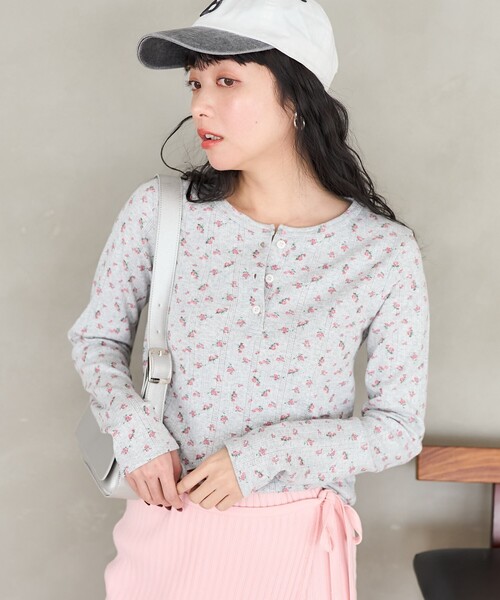 2025 Spring & Summer item古着ライクな雰囲気が可愛い花柄ヘンリートップス●針抜きフライスに花柄を重ねた、古着のサーマルアンダーウェアをイメージしたデザイン●ヘンリーネックデザインで着こなしの幅も広がります●一枚でもインナーにも活躍するジャストサイズで着心地の良い生地感●デニムなど定番アイテムと相性抜群で、シーズンムードを高める一着です■針抜きリブ:伸縮性があり、通常のリブよりもテンションが緩く柔軟なのが特徴。針を抜いた部分は編目ができず、たて畝が目立つ表面になります。おすすめコーディネートデニムやサロペットなどカジュアルなスタイリングが合うトップスです。イージーパンツでリラクシーにしたり、スカートを合わせてフェミニンな雰囲気にしたり、様々な合わせを楽しめる一着です。--------------------------------------------------------お気に入り登録のオススメ▼商品のお気に入り登録▼再入荷、残り1点、セールなどの通知を受け取ることができます。▼ブランドのお気に入り登録▼新商品や再入荷、ショップのおすすめトピックスなど、いち早くブランドの情報を受け取ることができます。-------------------------------------------------------- ※こちらの商品は、弊社管理上のカラーを表記しております為、タグのカラー表記と異なる記載となっております。【サイト表記:タグ表記】・オフホワイト:OFF・グレー:GRY※掲載画像の商品の色味は、屋外や屋内の光の照射や角度により実物と色味が異なる場合がございます。また表示のサイズ感と実物は若干異なる場合もございますので、予めご了承ください。※着用、お取り扱いの際は、商品についている品質表示とアテンションタグを必ずご確認下さい。【FREAK'S STORE/フリークスストア】「アメリカの豊かさとワクワク・ドキドキを日本に伝えたい」という想いからスタート。1986年の創業以来、洋服、雑貨、インテリアなど自分たちが本気でカッコ良いと思うものをセレクト。積極的に楽しむ生活体験者=フリークとして、アメリカンライフスタイルの楽しみ方を提案するセレクトショップです。