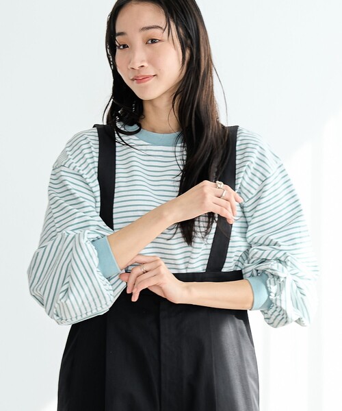 ぽわんとしたお袖が1枚でかわいらしい大人ロンTEE ■デザイン/素材 袖にボリュームを持たせて、ガーリーな空気感を備えた長袖Tシャツ。 程よいゆるさとボリューム袖が今らしいこなれ感を演出します。 ソリッドカラーはフロントにロゴプリントを配し、1枚でさまになる使いやすいデザイン。 ボーダー柄は、カジュアル過ぎない細めピッチと引き締めカラーのリブがポイントです。 1枚使いでも、キャミワンピなどとのレイヤードスタイルにも活躍する汎用性の高いアイテム。 素肌の上からでも肌当たりが心地よいUSAコットン素材を使用。 程よい厚みでロングシーズン活躍します。 *・*・*・*・*・*・*・*・*・*・*・*・*・* 【COTTON USAは、より環境に配慮した地球にやさしいコットン】 サステナビリティ(持続可能性)と公正な労働慣行の厳守をお約束します。 アメリカはサステナブル(持続可能)な農法により 公共な労働環境の下で綿花の栽培をしています。 彼らの畑は何世代に渡り、家族の中で受け継がれてきました。 これを未来の世代のために守るため懸命な努力を重ねています。 *・*・*・*・*・*・*・*・*・*・*・*・*・* 透け感:オフホワイトややあり 生地の厚さ:普通 光沢感:なし 裏地:なし 家庭洗濯:可能(ネット使用) 【注意点】 ※撮影商品はサンプルの為、実際の仕様と異なる場合がございます。 ※画像の商品は光の照射や角度、お使いのモニター環境により、実物と色味が異なる場合がございます。スタジオ物撮りの画像が実物の色味に一番近くなっております。 ※予約商品の場合、お届け予定はあくまでも目安となります。 生産の都合上、お届け時期が前後したり実店舗入荷時期とずれる場合がございますので、あらかじめご了承ください。 品名:USAコットン ソデボリュームL/S 品番:76206020537