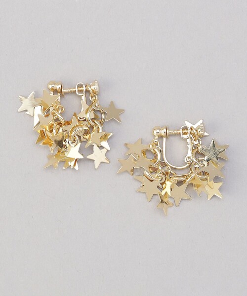 さらさら揺れて目を惹く、スターモチーフのイヤリング ■デザイン/素材 ミニマムサイズの星モチーフをふんだんにあしらった、存在感とトレンド感のあるイヤリング。 動くたびさらさらと揺れて上品に光り、目を惹きます。 短めで耳たぶにフィットしエレガントすぎないので、普段使いやカジュアルスタイルにもおすすめのアイテム。 軽やかな着け心地で、長時間の着用も快適です。 【注意点】 ※撮影商品はサンプルの為、実際の仕様と異なる場合がございます。 ※画像の商品は光の照射や角度、お使いのモニター環境により、実物と色味が異なる場合がございます。スタジオ物撮りの画像が実物の色味に一番近くなっております。 ※予約商品の場合、お届け予定はあくまでも目安となります。 生産の都合上、お届け時期が前後したり実店舗入荷時期とずれる場合がございますので、あらかじめご了承ください。 品名:スターモチーフチェーンイヤリング 品番:76836070244