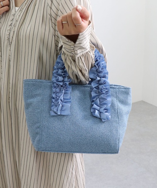 ロングセラーのハンドルフリルトート【デザイン】・光沢のあるグログランリボンを贅沢に使用・上品さと可愛いらしさがあるアイテム・いつものスタイルを華やかにしてくれます・プレゼントにもおすすめ【機能】・開閉が楽ちんなマグホック仕様・ワンマイルのお出かけにぴったりのミニサイズ【素材】・織り感のあるサマーツイード・グログランテープのフリル【スペック】・長財布(10×20cm):○・500mlペットボトル(タテ):×・500mlペットボトル(ヨコ):○・内ポケット:2【BRAND】T・S・L /ティーエスエル「可愛らしさ」と「デイリーユース」をキーワードに、自分らしいオシャレをするのが大好きな女性に向けたブランド。ほどよくトレンドをミックスし、手に取りやすい価格で提案。Happyな気分でお出かけできるバッグをお届けします。【ATTENTION】※画像の商品はサンプルです。実際の商品と色味、仕様、加工、サイズ、素材等が若干異なる場合がございます。・画像の商品は光の照射や角度により、実物と色味が異なる場合がございます。また表示のサイズ感と実物は若干異なる場合もございますので、予めご了承ください。【INFORMATION】・商品のお気に入り登録お気に入りアイテムの値下げ・在庫1点・完売後の再入荷などの通知を随時受け取ることができます。・ブランドのお気に入り登録新商品の発売や再入荷、セール、クーポン配布などお得な情報を受け取ることができます。