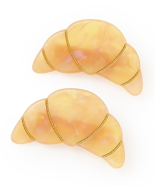 焼き立てパンをそのままモチーフにしたヘアクリップです。 クロワッサンとバゲットの2種類をご用意しました。 ツーピースセットなので両サイドに留めつけるのもおすすめ。 軽やかな風合いのため、ヘアアレンジを明るく見せたいときにぴったりです。