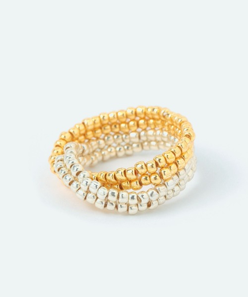 しっかりとした存在感のビーズリング ゴールドとシルバーのビーズを組み合わせたリング。 ねじり部分がデザインのアクセントになっており、サイズを選ばないので好きな指におつけいただけます。 シンプルながら手元にこなれ感を与えてくれるアイテムです◎ ■原産国:フィリピン ■仕様:サイズ12号 ーーー ゴールド シルバー ビーズ リング 指輪 ーーー