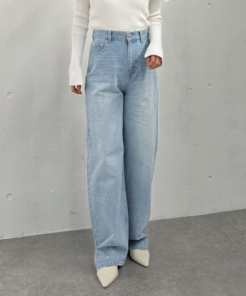 ■スタイリングに華やかさをプラス■ グラデーションのようにラインストーンを散りばめた華やかなデザインのデニム。 デニムを主役にスタイリングを組みたくなる一枚。 やや太めシルエットでゆったりと穿いて頂けます。 腰回りにヒゲのデザインを入れスッキリと見えるようにデザインしています。 裾に向かってカラーが濃くなるデザインなので縦が強調されスタイルアップして見せてくれます。 普段のスタイリングを華やかにしてくれるデニムです。 ※ラインストーンは熱加工で張りつけているため永久ではありません。摩擦や衝撃、経年劣化で剥がれてきてしまう場合があります。 ーーーーーーーーーーーーーーー 透け感:なし 裏地:なし 伸縮性:なし 光沢感:なし 生地厚さ:普通 洗濯方法:手洗い可 ※詳しいお手入れ方法は商品についているタグをご覧ください ーーーーーーーーーーーーーーー ※ご利用のモニター環境により、実際の色味と多少異なる場合がございます。 … information … 欲しいitemをお気に入り登録(♡マークをclick) ・お買いのがし対策…完売itemの再入荷やラスト1点の情報をお知らせ ・欲しいitemをお得にget…pricedownになったらいち早くお知らせ ・スムーズ検索…ZOZOのお気に入りアイテムページで簡単checkできるから、再検索不要♪