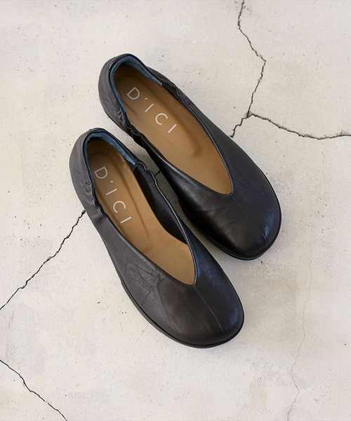 ""D'ICI定番の人気フラットパンプス、今季よりグリップ性の高い中敷へ変更。足が前滑りしにくいように改良しております。 `ランダムに入った絵柄がオリジナル感あるデザイン。 `足をふんわり包み込む柔らかな足入れが人気の1足です。 `中底がスポンジなのでクッション性が高く、歩きやすさも◎。 `しなやかで快適、個性が光るアイテムで、コーディネートの仕上げになります。 `◇D'ICI ディッシィ◇ `素足を優しく包み込む、軽く・柔らかい履き心地。 `幅広・軽量・安定感…「歩きやすい」を叶える、ゆるやかで、自由で、シンプルなフォルム。 `上質な素材へのこだわり。 `上品さと軽快さをあわせもつ大人の女性へ向けた、歩く喜びを感じるブランド。 `※プラット製法(甲革・裏材・中敷き・巻材を縫い合わせ、スポンジと中底をくるむ製法)`※日本製 `※MADE IN JAPAN `※MODE ET JACOMO モードエジャコモ DICI ディッシー `■素材 : BL、IV、BU・本革(ステア)/BLA・本革(ピッグドットプリント) ` #靴 #外反母趾 #内反 #通勤 #仕事 #ビジネス #旅行 #ローヒール #歩きやすい #ゆったり#ロングセラー#定番継続