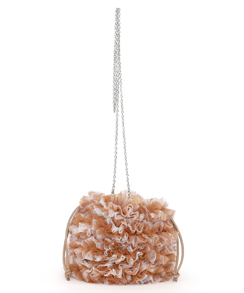 チュール生地をふんだんに使ったフリフリのドロストショルダーバッグ♪2色使いのチュールが絶妙な色味を演出♪巾着バッグとしてカジュアル持ち、チェーンショルダーでキレイメ持ちも出来ます!店舗へお問合せの際は下記の商品番号をお伝えください。商品番号:25122-11013※商品の画像はサンプルのため、実際の製品とは、仕様や加工、サイズ等が若干異なる場合がございます。◆注意事項◆可能な限り実物に近いカラーにて掲載しておりますが、ご使用のパソコンやスマートフォンなどの端末の環境によって、実際の色味と異なって見える場合がございます。予めご了承ください。サンプルで撮影している商品もございます。その場合、実際の商品とは色味・仕様が異なる場合がございますので、予めご了承ください。【SMIRNASLI/サミールナスリ】日常のひと時が輝けるようにヘルシーでエシカルに自然体で自分のスタイルと遊び心を持った大人の女性へ気持ちにフィットする物を提案します。■サイズ感:二つ折り財布対応■ポケット:内側1ヶ所■開閉:巾着■重量:約160g■サイズ:幅14cm/高さ15cm/まち14cm/ショルダー長さ110cm/口開き19cm= お気に入り登録がおすすめ!=お得な情報をいち早くお届け致します。アイテムをお気に入り⇒ SALE START / 完売COLOR再入荷 / LAST1点 etc...ブランドをお気に入り⇒新商品 / 再入荷 /クーポン・セール情報 etc...