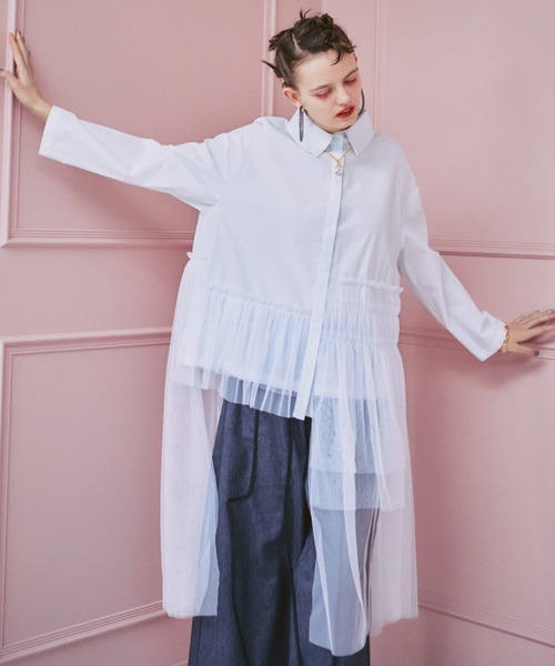 アシンメトリーのチュールデザインがポイントのシャツ。長めのチュールがドッキングされており、片方のみトップス丈に。フロントから見た時のバランスが◎チュールはふわふわと広がり、個性的なシャツ。かっちりとした襟付きのシャツ×チュールが好相性。パンツだとスタイリッシュに、スカートでもチュールが重なりオシャレな印象に◎------------------------透け感/ほぼなし光沢感/ほぼなし伸縮性/なし厚 み/普通洗濯方法/ 手洗い推奨------------------------※ご注意※・詳しいお手入れ方法は商品タグをご参照ください。・屋外の光や照明の当たり具合で、実際の商品の色味とカラー別画像の色味に若干の違いが発生する場合がございます。・詳細画像と併せてご確認の上、ご注文いただきますようお願いいたします。・撮影サンプルと量産分で生産ロットが違う場合、風合いに多少のブレが生じることがございます。manana suerte (マニャーナ スエルテ)"明日着るのが楽しみなお気に入りの服"遊び心のある自由で開放的なムード多様な色彩、テキスタイル着る人の個性を引き立たせるデザインと、着心地のよさを兼ね備えたアイテムを展開します。manana suerte公式Instagram → @manana_suerte【商品のお気に入り登録】完売カラーの再入荷通知やラスト1点の通知プライスダウンの通知も受け取ることができます。【ブランドのお気に入り登録】新商品や再入荷など、ブランドの情報をいち早くお知らせいたします。ぜひご登録ください◎
