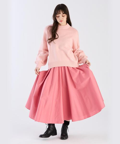 裾に向かって広がるフレアデザインが優雅なスカート。シンプルなトップスをインしてバランスを取ると、スタイルアップ効果も◎。足元はブーツやパンプスでよりエレガントな装いに。実寸情報36(S)ウエスト:54cm/総丈:87cm38(M)ウエスト:58cm/総丈:91cm40(L)ウエスト:62cm/総丈:94cmモデル身長/171cm、着用サイズ/38
