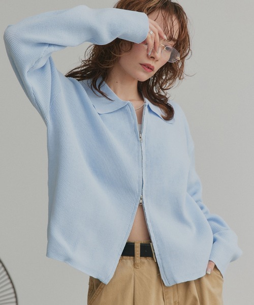 スタイリッシュな着こなしを叶えるなら。 今季マストなポロニットカーディガン。 ベーシックな1着でボトムスを選ばず着こなせます。 ■point ・ショート丈でスタイルアップ効果も ・ダブルジップで抜け感ある着こなしも ・ゆとりあるスリーブで気になる二の腕部分をカバー ■detail きちんと感ある襟付きでカジュアルになり過ぎずに着用できます。 身体のラインを拾い過ぎないシルエットで、 ダブルジップで調整すれば抜け感ある着こなしも◎ ■fabric 肌触りの良いテレコニット生地 ……………………………… 伸縮性:あり 透け感(濃色):なし 透け感(淡色):多少あり 裏地:なし ポケットなし ……………………………… ■coordinate 定番のデニムはもちろん、スラックスを合わせた大人っぽい着こなしも。 トレンド感あるミニ丈ボトムスとも相性抜群です。 洗濯表記 【洗濯処理】水温40℃を限度に、手洗いできます 【漂白処理】 漂白できません 【タンブル乾燥】 タンブル乾燥禁止です 【自然乾燥】 日陰で、平干しします 【アイロン仕上げ】 120℃を限度に、アイロンが使えます 【ドライクリーニング】 石油系溶剤又はデカメチルペンタシクロシロキサンによる、弱いドライクリーニングができます 【ウエットクリーニング】 非常に弱い操作による、ウエットクリーニングができます 【洗濯表記説明文】 洗濯ネット使用 あて布使用 Attention 【お取り扱い上のご注意】 この製品は風合いを重視しているため、毛玉が発生する場合があります。 これは、素材の特性上避けられない現象で、その発生を完全に防止することはできません。 1日着用したら2日休ませるなどローテーションをして着用して下さい。 無理に引っぱって取ろうとせず、ハサミや毛玉取り器などで取り除いて下さい。