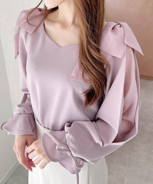 ★WEB限定アイテム★【リボンがアクセントになった上品なトップス】▼Designオンオフ気にせず着て頂けるレディデザイントップス。肩口の光沢のある大きなリボンと袖部分のシアー素材がアクセントとなってコーデが一気に上品な印象に。▼Stylingミニスカートと合わせガーリーライクにも、ロングスカートと合わせて大人な印象にも着て頂けます。ツイード生地や柄物との相性も抜群。▼Recommend・リボン・フェミニン・上品・シアー・レディデザイン・華やか・春ブラウス 【以下ピンク参考。カラーにより多少の誤差あり】・透け感:やや透ける・伸縮性:あり・生地の厚さ:普通・裏地:なし※ご覧のモニター環境や撮影環境により実際の商品と多少色味が異なって見える場合がございます。ご理解の程よろしくお願いいたします。≪お買い物をよりお楽しみいただくために♪≫▼商品のお気に入り登録完売カラーの再入荷通知や、完売間近の通知、セールの通知を受けることができます。▼ブランドのお気に入り登録新商品や再入荷など、いち早くブランドのお得な情報を受け取ることができます。