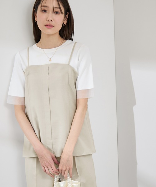 感度の高いスタイルをマーク。レイヤードチャレンジしたいビスチェ。【素材感】・吸水速乾、シワになりにくい多機能素材。・とても軽く、さらっとした着心地。【デザイン・シルエット】・リラクシーなウェアがそろうエフォートレスシリーズ。・からだに沿うラインのフェミニンなビスチェ。・アジャスト可能なショルダーストラップ付き。・トップは後ろ側がギャザー使いでフィット。【カラー】・チャコールグレー、ライトグレー、ベージュの落ち着いた3色展開。【スタイリングポイント】・同シリーズのパンツやジャケットに合わせて、おしゃれなスリーピースにチャレンジ。・ゆるっとしたカーディガンのインナーにも最適。・タイトフィットでフレアスカートも好バランス。・シリーズで展開しているのでセットアップで着用や、大人とKIDSでお揃いコーデも可能。<同シリーズアイテム>・シングルテーラードジャケット(品番:GDV15200)・半袖ジャケット(品番:GDV15210)・ビスチェ(品番:GDF15200)・スティックパンツ(品番:GDS15200)・ワイドパンツ(品番:GDS15240)・オールインワン(品番:GDY15200)・【KIDS】スカート(品番:GRC25000)・【KIDS】キャミサロペット(品番:GRY25000)-----------------------------裏地:なし透け感:ややあり伸縮性:なし生地感・厚さ:やや薄手ポケット:なしその他:アジャスター取り外し可、前は開きません季節:春・夏-----------------------------※撮影時の光、お使いのモニター環境によって色の見え方が違う場合がございます。※モデル身長:165cm 着用サイズ:38