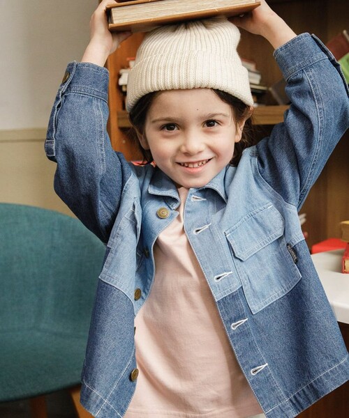 ■ポイントトレンドのバイカラーが目を惹く、5.5オンスデニムのジャケットです。季節の変わり目に重宝するデニム素材。アウターの下にシャツ感覚で着るのもおすすめです。洗い加工をかけ、少しビンテージ感のあるデザイン。フロントのおおきめポケットとバッグの落書き風プリントがポイント。着るだけでこなれ感の出るデニムジャケットです。季節の変わり目はトレーナーやロンTの上から軽く羽織ったスタイリングがおすすめ。■素材5.5オンスデニム 綿100%-----透け感:なし伸縮性:なしポケット:あり裏地:なし※モデル着用写真についてはイメージの為、実際の 商品とカラーや仕様が異なる場合がございますので、 商品画像をご覧ください。※商品の色味につきまして、お客様のお使いのPCの モニター環境により実際のカラーと画像の色味が 違って見える場合が御座います。 予めご了承の上、ご注文下さい。※店頭・外での撮影画像は光の加減で、 実際の商品より明るく見える場合が御座います。子ども/子供/こども/子供服/キッズ/ジュニア/男の子/女の子
