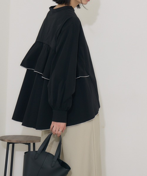 配色のメロウがアクセントのキーネックブラウス <POINT> バックに施されたフレアが、シンプルながらも女性らしいシルエットを演出。 動くたびに美しく揺れるフレアが、目を引きます。 【デザイン・シルエット】 裾に配色されたメロウステッチが、シンプルなブラウスのアクセントに。 細やかなディテールが全体のデザインを引き立て、洗練された印象です。 キーネックデザインが、顔周りをスッキリと見せ、小顔効果が期待できます。 Aラインシルエットで身体のラインを拾わず、リラクシーな着心地。 【素材感】 高品質なポリエステルを使用し、シワになりにくく、手入れが簡単。 軽やかな着心地で、一日中快適に過ごせます。 【カラー】 ホワイト ブラック 2色展開 【スタイリング】 デイリーから休日のお出かけ、通勤、オフィスでのお仕事着として幅広く活躍します。 スカートなら、タイトスカートなどスッキリとしたシルエットの物を合わせると◎ パンツはテイパードパンツからワイドパンツまで幅広いデザインのパンツと好相性です。 裏地:なし 光沢:なし 伸縮性:なし 透け感:なし 生地の厚さ:薄い ポケット:なし --------------------------------------------------- ●お気に入り登録でお得情報を手に入れよう! 「商品のお気に入り登録」をすると、再入荷通知や、ラスト1点の通知、セールの通知など、お得情報が届きます。 また、マイページでいつでも確認が可能になります。 「ブランドのお気に入り登録」をすると、新商品や再入荷、などいち早くブランドの最新情報をお届けします。 ぜひ、ご利用ください。 ----------------------------------------------------