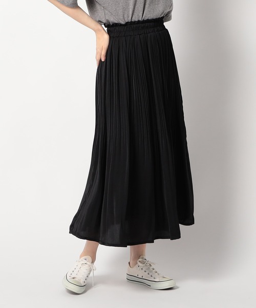 新色 ヴィンテージサテンスカート毎シーズン人気のヴィンテージサテンスカートに新色が登場。裾に向かってフェードしていくプリーツデザインが魅力的な一枚です。広がりが軽やかで落ち感のあるサテン素材なので、通勤ベーシックスタイルはもちろん、Tシャツやトレーナー・フ―ディーなどのカジュアルアイテムとの相性も抜群です。ウエストは総ゴムのノンストレスな穿き心地なのも嬉しいポイントです。 ■point軽い光沢感とマットな雰囲気の動きあるヴィンテージサテンの生地を使用しています。長時間座っていてもシワが気にならない素材です。ストレッチ感のある柔らかい裏地が付いており、シーズンレスで着用可能な1着です。■detail*ストレッチの効いた薄い裏地が入っており、透けを気にせず着用して頂けます。*ウエストは総ゴム仕様です。*「手洗い可能」なのでご自宅でお手入れしていただけます。■fabric……………………透け感:なし裏地:あり伸縮性:裏地ストレッチあり光沢感:ややあり生地の厚さ:薄い洗濯方法:手洗い……………………※詳しいお手入れ方法は商品タグをご参照ください■coordinate*通勤のベーシックスタイルはもちろん、カジュアルスタイルもこなせます。*足元はスニーカー、サンダル、パンプスなどスタイリングに合わせて幅広く相性が良いです。