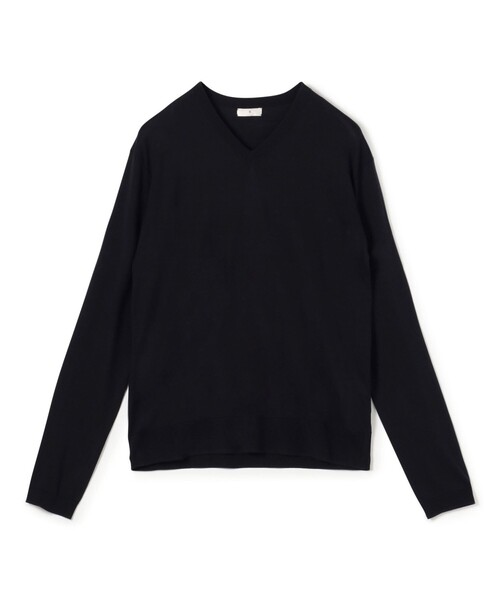 極細番手のウォッシャブルシルク糸を使用し、軽くシアー感のある平編みで編み立てたシリーズ。 シルクは人の肌に近いタンパク質でできている、吸湿性・通気性に優れた肌に優しい素材です。 通年使用できるのもちろん、上品な光沢感としなやかさが魅力。 ホームケア可能なので汗ばむ季節にも嬉しい素材です。 身幅にゆとりを持たせたドロップショルダーのVネックプルオーバー。 Vネックは抜け感が出過ぎないようなモードな表情にこだわりました。 袖丈は長めながら袖口リブでキュッと手首で留まってくれるので、くしゅくしゅっと手元に弛ませて着こなしていただくのがおすすめです。 背中心には華奢で繊細なロゴマークを刺繍。 ※商品の色味は、商品単体または素材アップ画像をご確認ください 2025SS商品 店舗にお問い合わせの際は、下記の商品番号をお申し付けください。 商品番号:48-02-51-02001