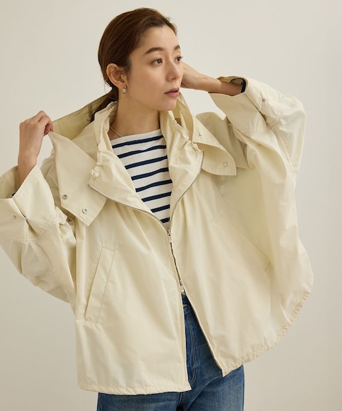 【デザイン・シルエット】 構築的なパターンで設計するマウンテンパーカは三角形のシルエットがポイント。着る人の体系を選ばずリラックスした着心地です。高いスタンドカラー、肩線をあいまいにしたワイドなドルマンスリーブ、ギャザーを活かしたシルエットはモードな雰囲気を纏います。フードはファスナーで取り外し可能。 【おすすめのスタイリング】 ワイドシルエットのパンツやすっきりしたIラインスカートとの相性がよく、ワンピースと合わせても素敵です。 【素材】 シルク混の軽量撥水タフタ素材で、シルク特有の発色のよさと春らしい軽さが特徴。 ---------------------------- 透け感:なし 裏地:なし 伸縮性:なし 光沢感:なし 生地の厚さ:薄手 ポケット:なし 開き方:ファスナー ---------------------------- 【モデル情報】 モデル身長:171cm 着用サイズ:38 ※画像の商品はサンプルです。実際の商品と仕様、加工、サイズが異なる場合がございます。 ※撮影場所やライティング、お使いのモニター環境によって色の見え方が異なる場合がございます。 ※商品のカラーは画像の色味をご参照ください。動画は仕様説明のため、色味が実物と異なる場合がございます。