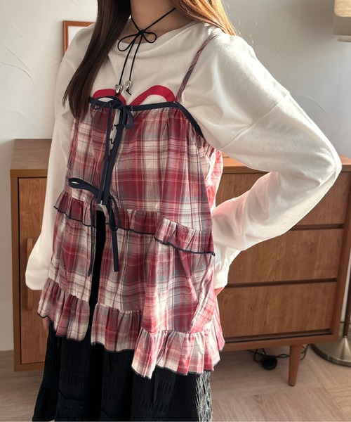 【kutir ladies/クティールレディース】 新作情報はInstagram公式アカウントからチェック! ↓ 【@kutir_ladies】 ------------------------------------------------------ -アイテム説明- 【コーデのワンポイントに♪通年活躍するレイヤードビスチェ】 kutir人気のチェック柄を使用し、 フリルやメロー使いでレディライクに仕上げたアイテム。 フロントのダブルリボンで着脱も簡単♪ 丈感は肩紐のアジャスターで調節可能です◎ アームホールや丈感が長めでゆったりとしているので オーバーサイズのトップスとのレイヤードも叶います。 サラッとしたシャツ地で秋服限らずに、インナー次第で通年着用していただけます。 -コーディネート‐ Tシャツやスウェット合わせでカジュアルに、 タンクトップやキャミソール、ワンピースやタートルニットなど いつものコーディネートに合わせて着用していただけます。 ------------------------------------------------------ 透け感:なし 裏地:なし 伸縮性:なし 光沢感:なし 生地の厚さ:普通 ------------------------------------------------------ -スタッフ着用コメント- 身長:155cm/体型:普通/普段サイズ:Mサイズ/着用サイズ:Fサイズ サイズ感:ゆったりとしたサイズ感 素材感:肌触りの良いコットン地 着心地:ストレスフリーに着用していただけます -kutirブランドコンセプト- "トレンド×kutir original" サイズやカラー豊富に展開中! 古着らしさにトレンドを取り入れた new style (WEB限定) ※サイト上のカラー名と、お届け商品に記載されているカラー名が異なる場合がございます。 ※ご覧いただく環境により、実物と色味が異なって見える場合がございます。ご了承ください。 【お買い物をよりお楽しみいただくために】 ▼商品のお気に入り登録(ハートマークをクリック) 完売カラーの再入荷通知や、ラスト1点の通知、セールの通知も受けることができます。 ▼ブランドのお気に入り登録 新商品や再入荷など、いち早くブランドのお得な情報を受け取ることができます。